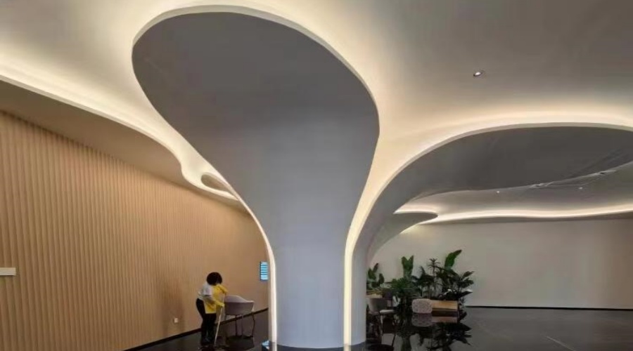 查看詳情廣州酒家文昌店改造項目中,GRG異形吊頂以“珠江浪涌”為設(shè)計主題,通過雙曲面動態(tài)造型與智能光影系統(tǒng)的結(jié)合,成功打造出兼具文化敘事與沉浸式體驗